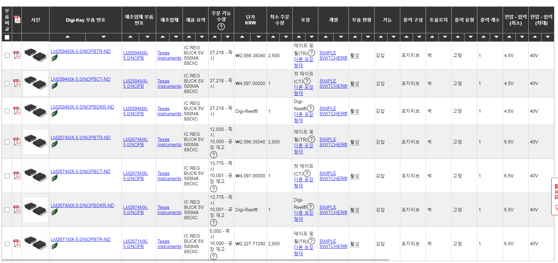 의외로 쉽다. 게다가 IC마다 데이터시트를 제공(IC 사진 왼쪽에 있는 PDF 파일모양)하니 그것으로 조건에 부합하는지 확인하면 마지막으로 단가를 확인하면 된다.