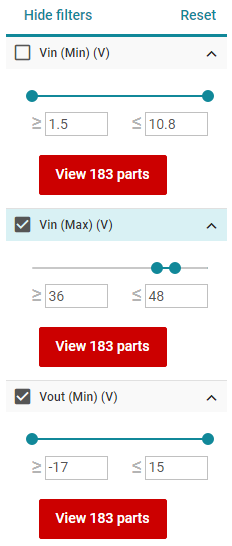 전압 범위처럼 필터링 적용을 하고 기존 LM2676의 패키지인 DDPAK보다 작은 것들을 선택해보자